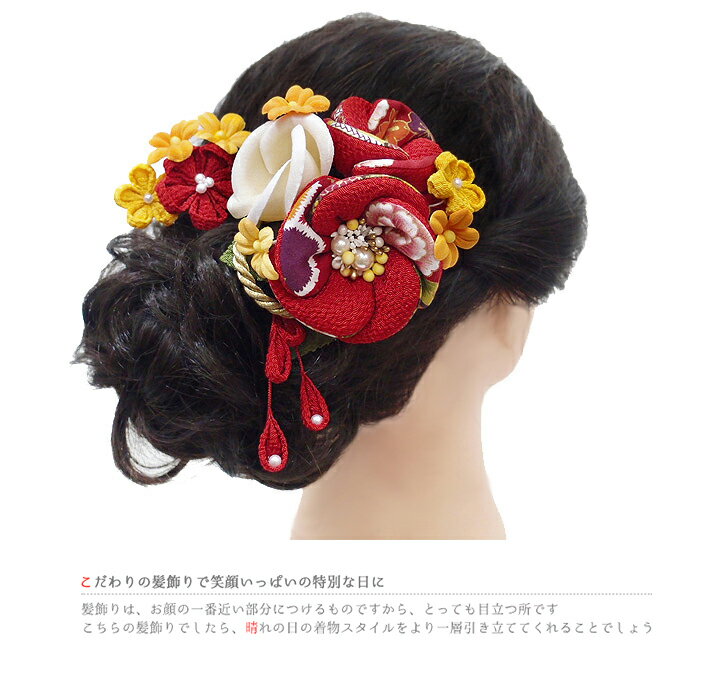 髪飾り 成人式 振袖 袴 2点セット赤 ちりめん 大人 浴衣 かんざし 簪 卒業式 フォーマル 結婚式 花飾り つまみ細工 リボン ちりめん 髪飾り No.9-3768 サイズ表 大きい花 縦 約15cm (房含む)× 横 約9cm × 高さ 約5cm 小さい花 縦 約3cm × 横 約5cm × 高さ 約2cm ※飾り部分のみ計測しています。