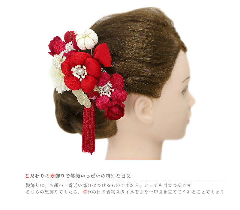 お着物や袴、浴衣にもピッタリですね! 装いに髪飾りをプラスするだけで、 華やかさがアップし、ワンランク上のコーディネートになります。