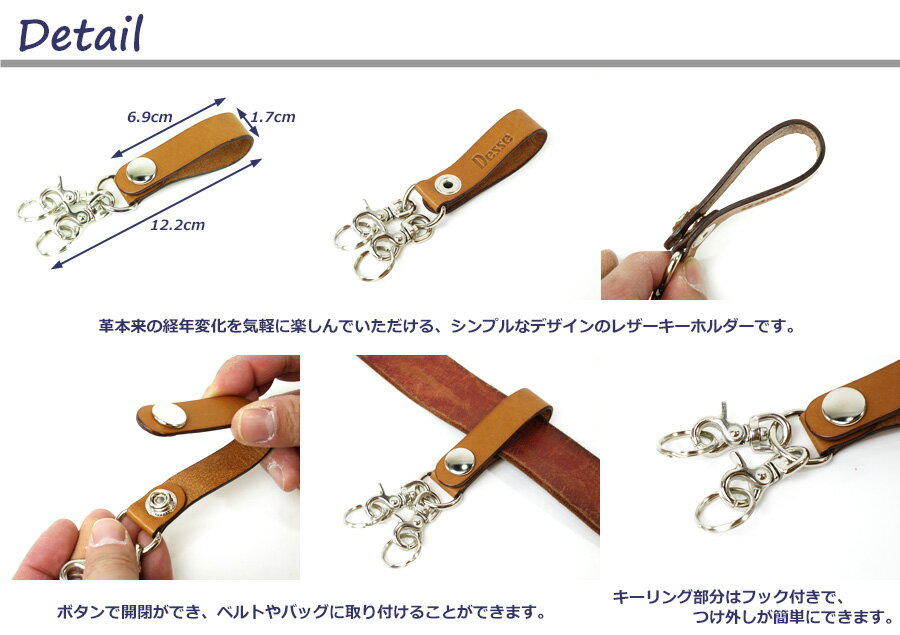 キーリング部分はフック付きで、つけ外しが簡単にできます。