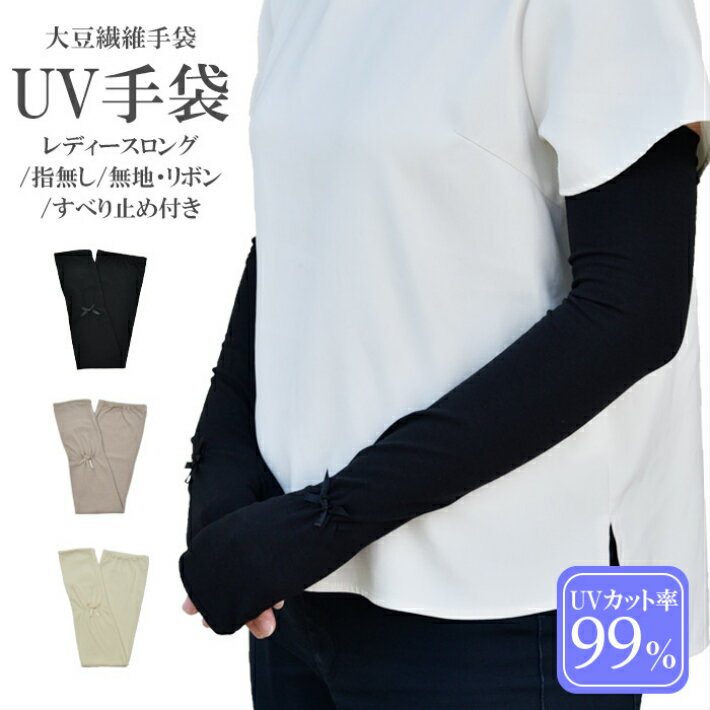 UV手袋 UVカット ロング 大豆繊維 冷感 レディース 春夏用 アームカバー 無地 リボン すべり止め付き 【メール便送料無料】/ UV対策 UVケア スマホ対応 スマホ手袋 おしゃれ 紫外線対策 日焼け防止 母の日 プレゼント