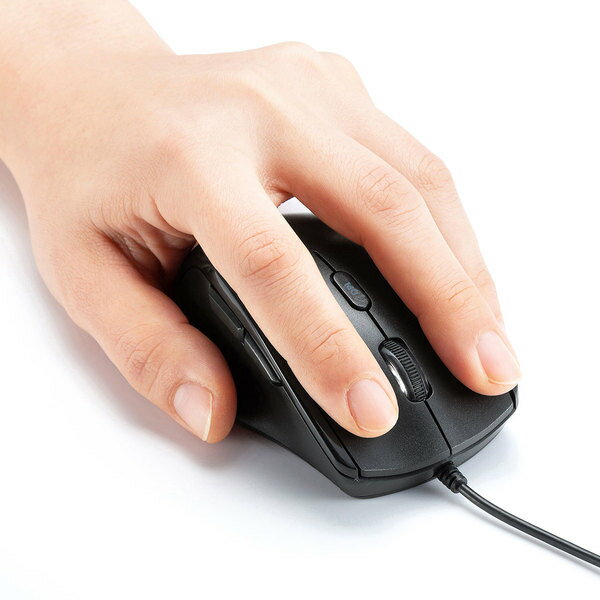 【特長】マウスの右側面にサイドボタンを搭載した、左利き専用の有線マウスです。